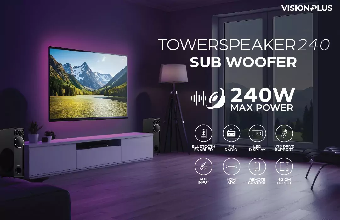 Elevate your home entertainment with the Vision Plus Tower Speaker 240W, a premium handcrafted wooden sound system built to deliver powerful, room-filling audio. With a maximum output of 240W, this tower features dual 6.5″ subwoofers, twin 3″ midrange drivers, and dual 1″ tweeters to produce deep bass, clear mids, and crisp highs for a balanced, immersive listening experience. The hand-made wooden cabinet enhances acoustic performance while adding an elegant finish to any living space. Versatile connectivity options — Bluetooth, USB, AUX, and HDMI — plus an LED display and remote control make it simple to connect devices and control playback. FM radio is included, and the speaker is backed by a 2-year warranty for added peace of mind. Link: https://overtech.co.ke/