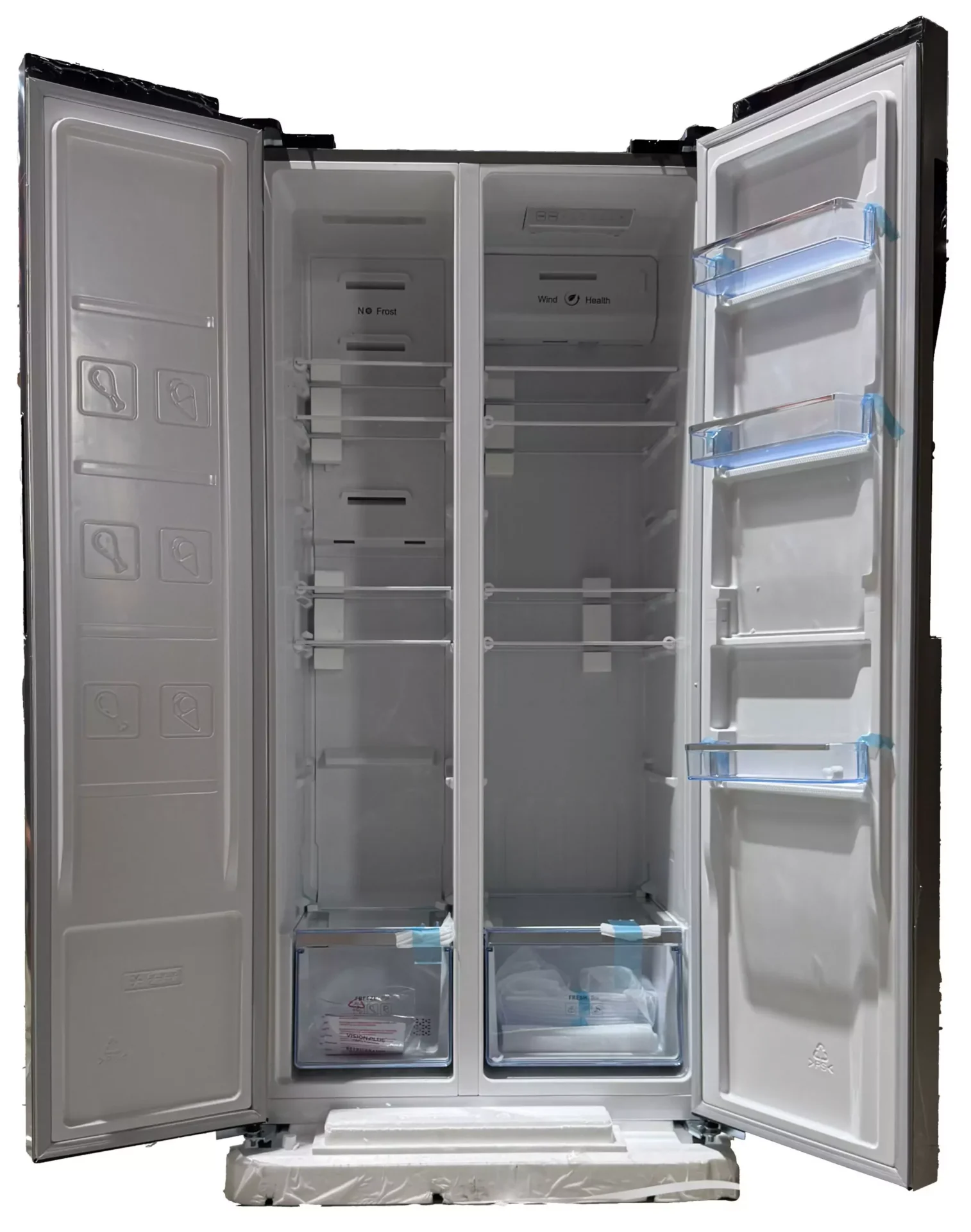 This spacious refrigerator offers a generous 410L capacity, providing ample storage for families and households that require more room. With its side-by-side door design, you get easy access to both fridge and freezer sections, making food organization effortless.